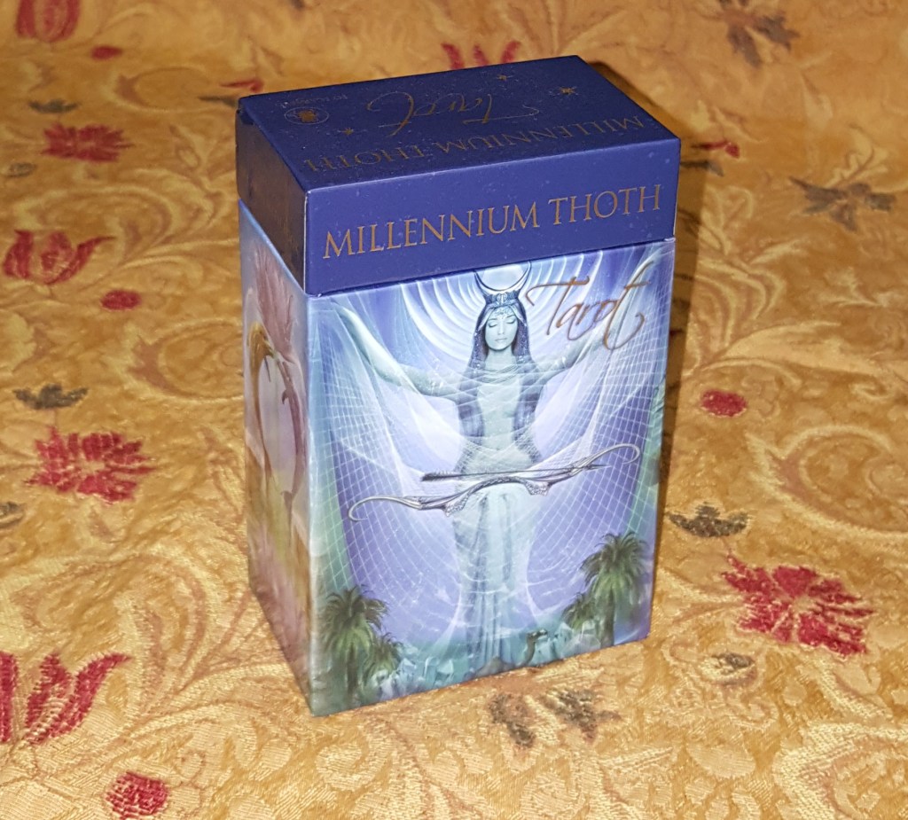 A review of the Millennium Thoth Tarot will be difficult for me, and I’m quite certain that the review will sadly fall on the more pedantic and comparative side. I hold a great respect, even reverence for the Crowley-Harris Thoth. The first book I was ever recommended on tarot was Crowley’s The Book of Thoth. My crazy and beloved aunt, who had given me my first tarot reading when I was twelve, told me that this was the book to use to learn tarot, and from her rickety two-tier bookshelf, she lent me her worn cerulean-blue copy. I was thirteen. Most anyone who has slogged—I wouldn’t call it an easy read—through The Book of Thoth knows this feeling: when one is finished reading that book, there is a feeling that one either knows everything about the tarot or nothing about the tarot. Crowley’s associations in his various essays on the trumps are far-reaching and illuminating and maddening and often tenuous or simply arbitrary, though he would certainly deny the last. My affection for his system has waxed and waned over the years, but my respect for his vision has never faltered. His new system of tarot and its “inspired” changes and flourishes and embellishments have become foundational to the modern tarot world, and he would be so proud. Given his personality, we should—at the risk of sounding macabre—be thankful that he is dead because I fancy that he would be insufferably and loudly pleased with himself for the tremendous influence that his work has had. I have read his book through a few times over the last thirty years. I think it time to read it again.