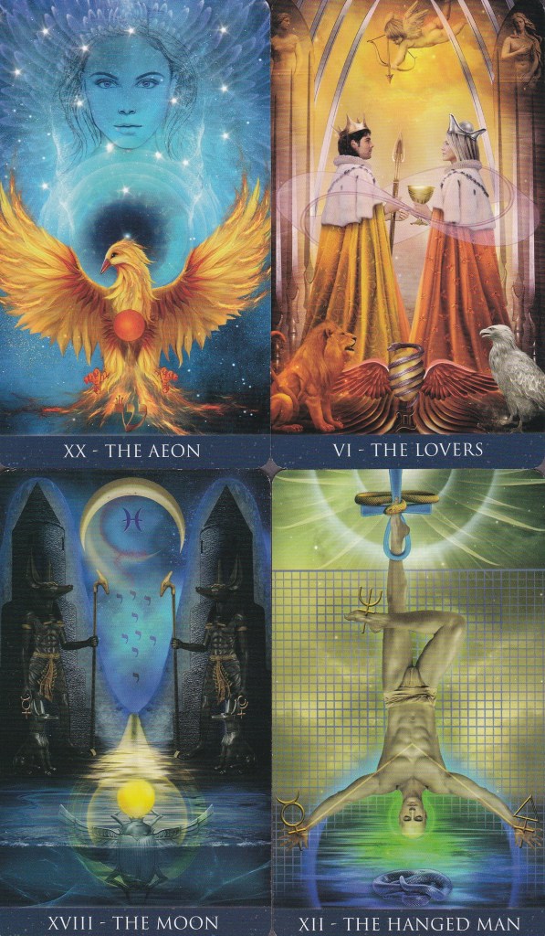 In any case, as a final note, I wonder why, when producing a deck based so closely on Crowley’s own tarot, the artist or graphic designer of the cards would choose to eliminate the esoteric associations listed on the original cards. Occasionally, a symbol is here or there—the symbol of Venus on the Empress and Virgo on the Hermit, to name two—but why not have those associations and the cards’ Hebrew letter associations listed on either side of the title? Perhaps it was a publishing decision. The artist and writer Robert Wang noted in his essential tome The Qabalistic Tarot that U.S. Games made the decision to eliminate esoteric indicia when they published his Tarot of the Golden Dawn. Decisions like these are baffling since I would imagine the people who would search out these decks would want them for this information.