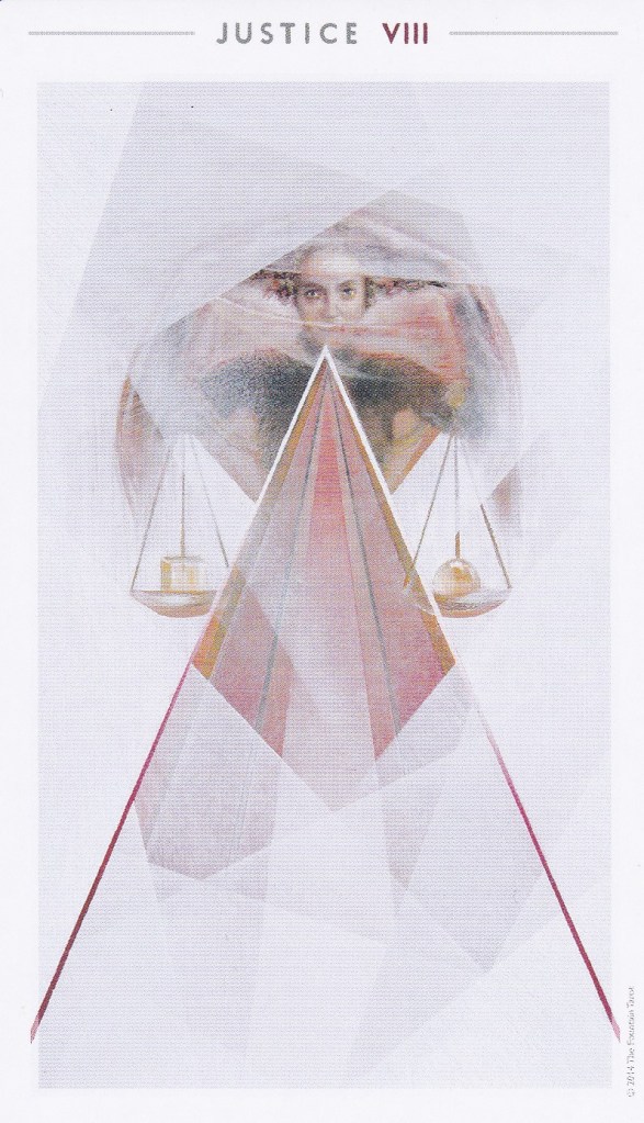 I laid the first card down atop her twin significators: Justice. The first card told me nothing, and I said as much, so I laid down the rest of the cards in my spread to see what story they told. As the other four people at the table chatted, R— was quite focused. Once all the cards were down, I could now see that Justice had another, harsher face. “So Justice is normally a good card,” I began, “but for you now, the only question on your mind is ‘Why do bad things happen to good people? Where is the Justice in that?’” Her eyes simultaneously widened and welled with tears: “Oh, my God, yes!” The tears in her eyes and the catch in her now emotional voice triggered my daughter’s reflexes. As the child of a long-time tarot practitioner, she snapped to attention with a little jerk of her head, she looked at the three other people and said, “Yeah, OK, we should probably head to the living room. Leave them alone.” And in what I must say was a proud-papa moment for me, all the people at the table stood in unison like the politest of automatons and left the dining room.